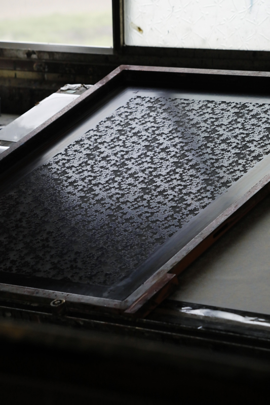 It was characterized by a variety of colors and curved, simplified patterns symblizing plants, animals and landscapes, called "Yuzen patterns." In order to dye a pictorial pattern, a technique to place a thin glue on the outline of the pattern was invented. This technique prevented bleed between colors and came to be called “Yuzen dyeing”. Among the technique, one is called “Tegaki Yuzen,” where pieces are dyed one by one with careful hand work of the artisans. We, Maruyama Senko, produces Yuzen Japanese paper using this Tegaki Yuzen technique, accomplished with stencils also unique to this technique.