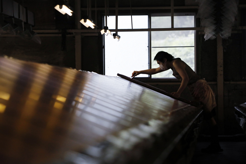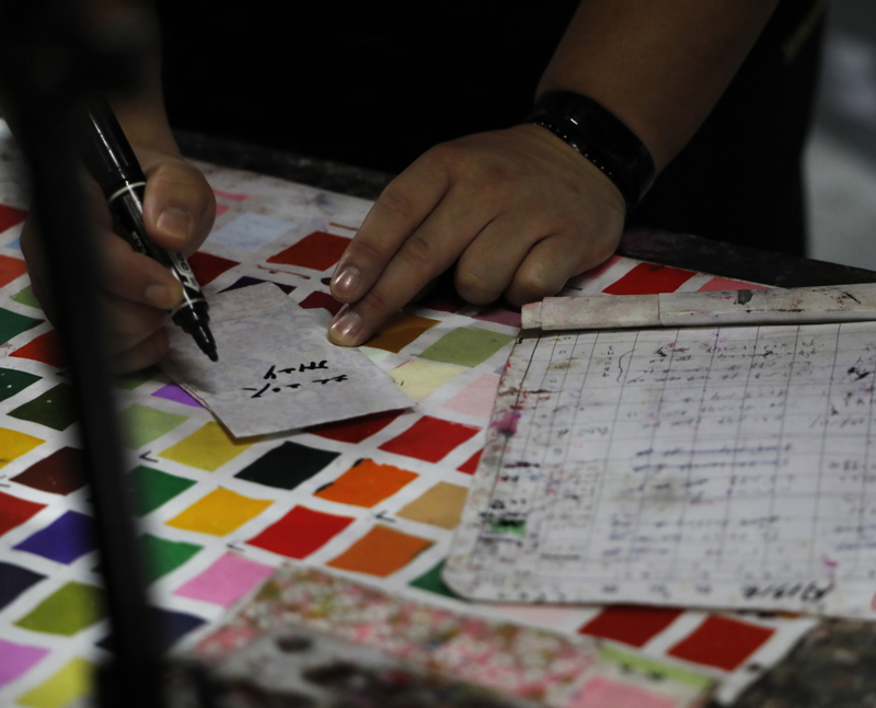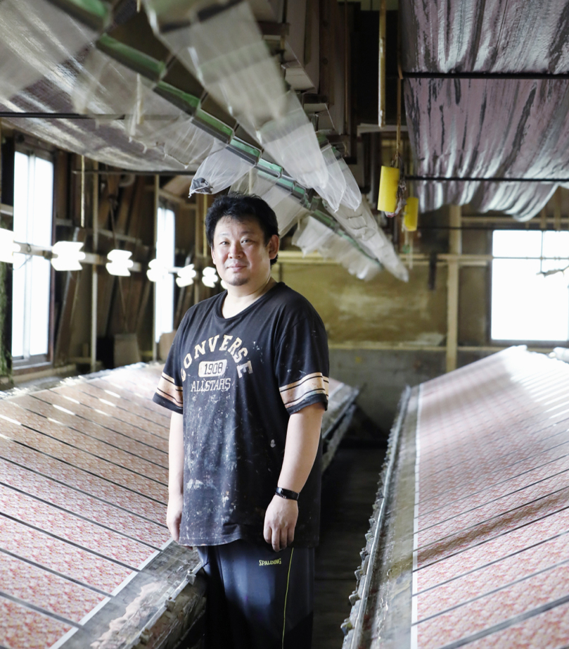 Kazutake Akiyama was born in Chiba. He started training to be a dyeing artisan from scratch about 20 years ago. During his long training period, he has created countless colors through trial and error so that now he dyes paper in colors that perfectly match clients’ preference.
